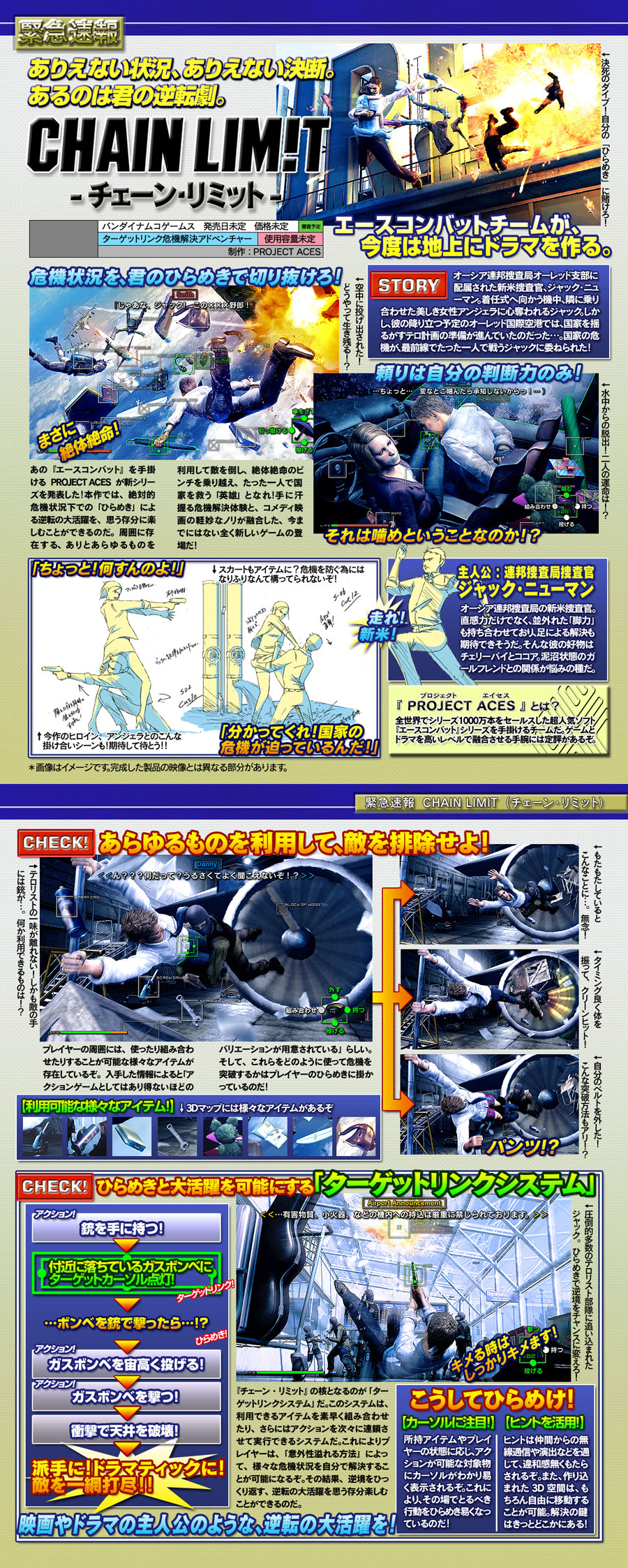 Three game concepts were pitched to Famitsu readers in the magazine's issue for the week of March 26, 2007. These concepts were known as Brave Arms (ブレイブ・アームズ), Second, and Chain Lim!t. All three games would have taken place in the Strangereal world and were to be developed by Project Aces. They would have been the first Project Aces games that didn't involve piloting aircraft.
