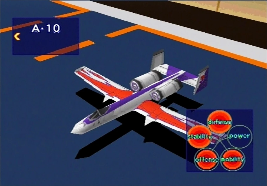 - "A heavily armed attacker that offers close range ground support using overwhelming firepower and endurance. Featuring a broad selection of weapons, including 30mm machine guns, bombs and rockets, offering excellent air-to-ground attack capabilities. Highly stable at low speeds, it specializes at extended and precise ground clearing in a single attack approach. Known as the "Thunderbolt II", it is characterized by a straight wing that is strong at low speeds, and its high placed engine and reinforced armor protects it against counter attacks from the ground."