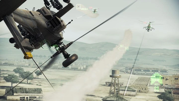 - In Ace Combat 7, when an Erusean AH-64D is shot down, the ensuing wreckage will instead depict an Osean AH-64D. This is likely because no Erusean texture was made for the AH-64D wreckage, and the Osean version is simply reused.