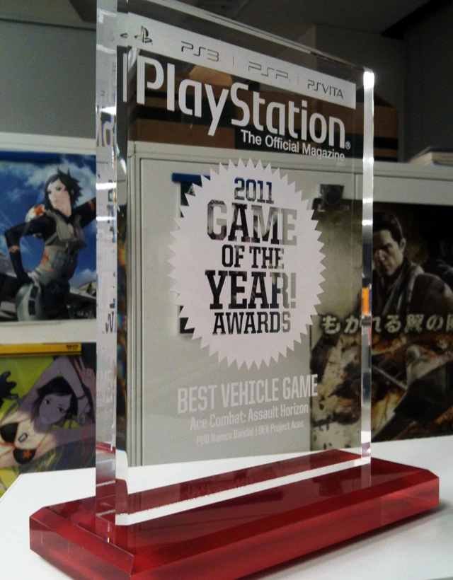 PlayStation: The Official Magazine reviewed the PS3 version and awarded a 9/10 as well as the "Best Vehicle Game" award during their 2011 "Game of the Year!" awards.[24] They sent a commemorative plaque to Bandai Namco, and Kazutoki Kono posted a picture of it on Project Aces' Twitter.[25][26]