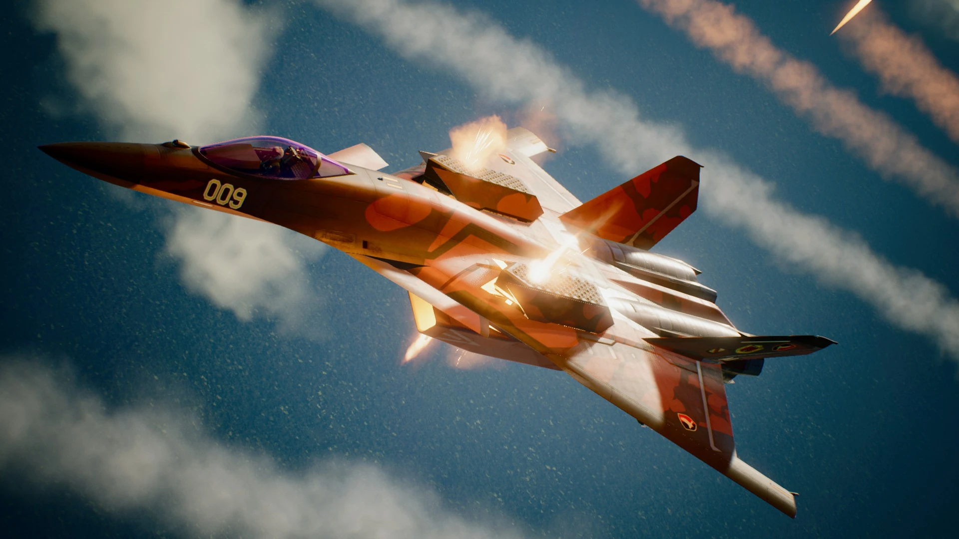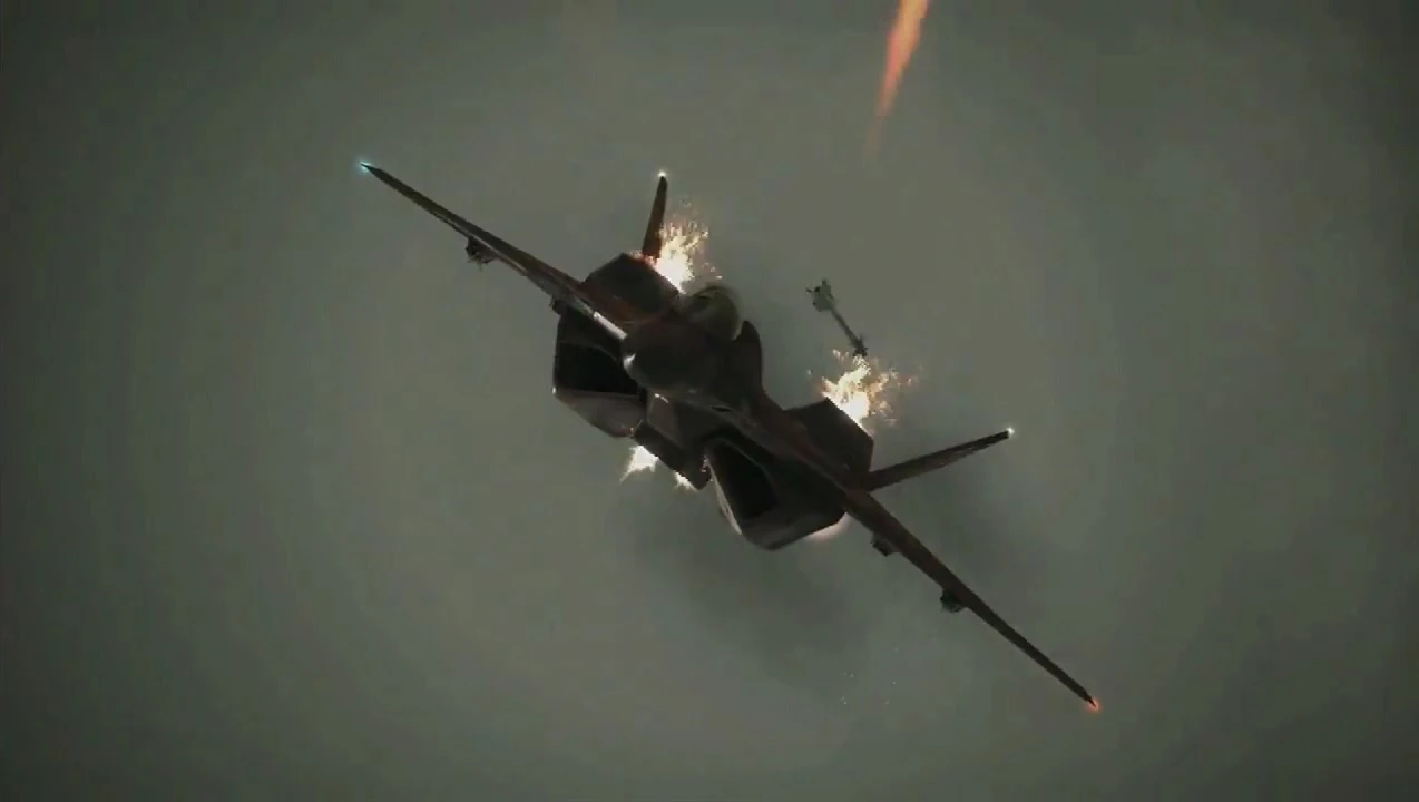 A CFA-44 Nosferatu firing a salvo of All Direction Multi-Purpose Missiles in Ace Combat 7: Skies Unknown