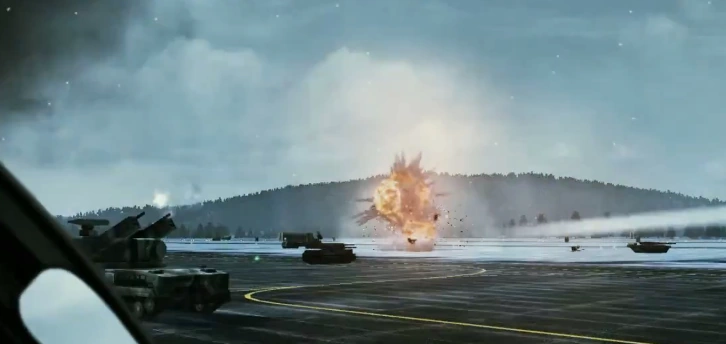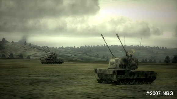 An Ustian Flakpanzer Gepard defending Valais Air Base from A World With No Boundaries' fighters and the XB-0 Hresvelgr