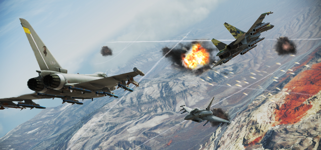 Players from Alpha and Bravo teams start both in the northwest and southeast corners of the map. Yellow, orange and sometimes red targets enemies will spawn in front of the teams as they fly in. Two MiG-31B Foxhounds TGTs on both sides spawn separately from the main group of fighters will also fly in to attempt in flanking the player teams. When they destroy the main groups, more yellow, orange and red targets will spawn in the center of the map.