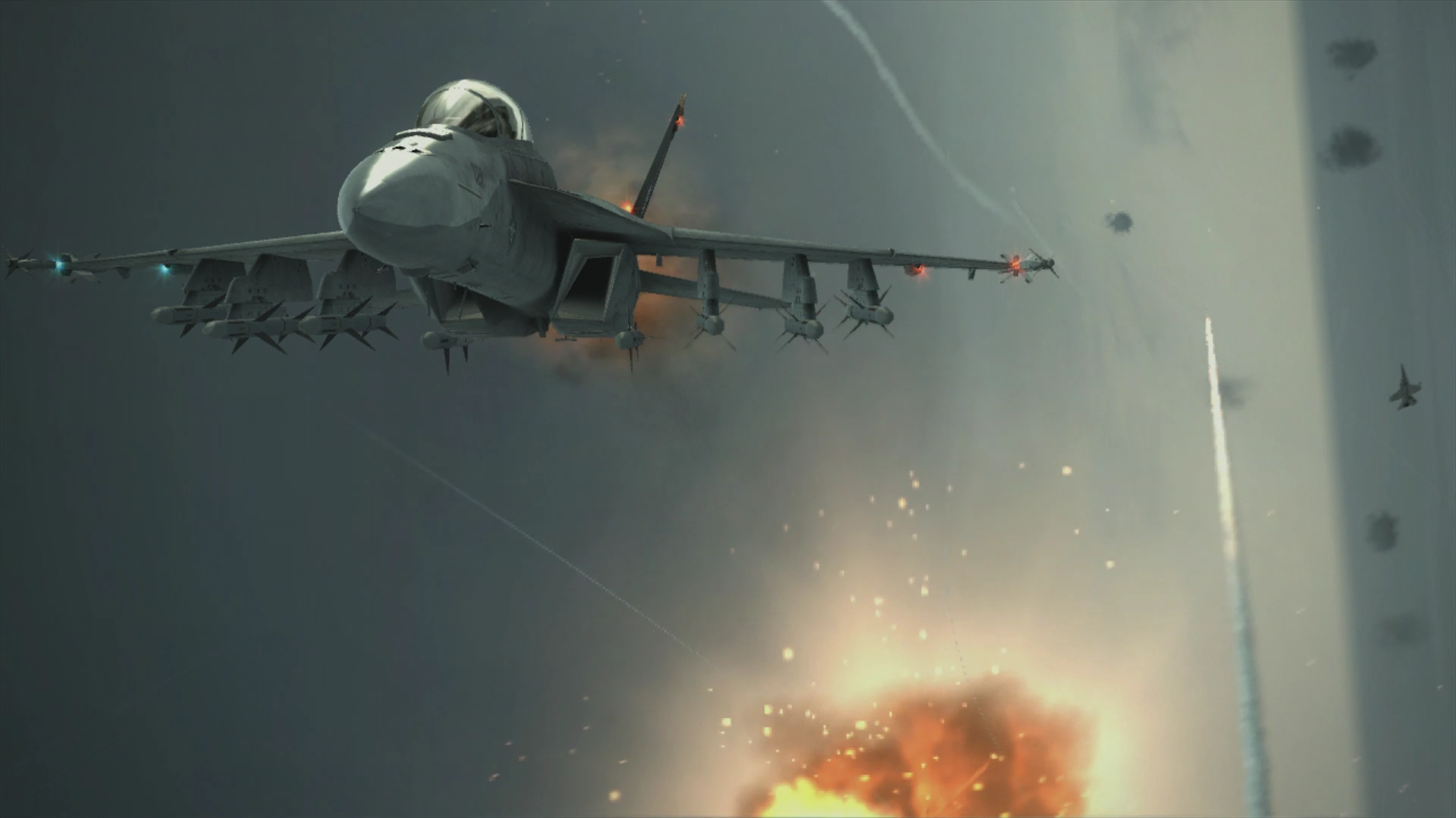 The next day, with calculations provided by AWACS Ghost Eye,[13] Avalanche Squadron took part in investigating an area near Sonne Island where the cruise missiles originated from. The squadron came across the Chandelier, and, after having been provided data from Victor Voychek, assisted their allies in attacking and destroying the weapon.[14]