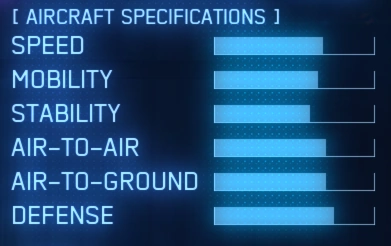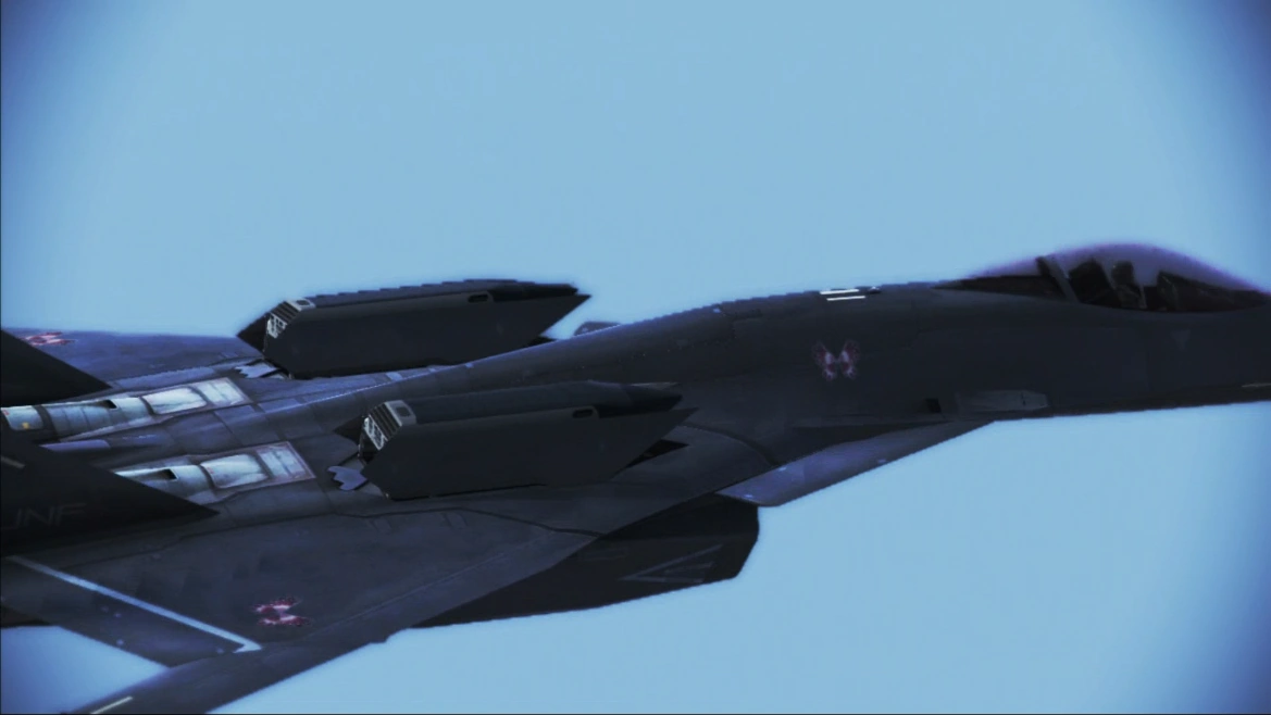 - "A cutting-edge next-generation carrier-based stealth fighter nicknamed "Nosferatu" (meaning "undying"). With independent left and right 3D thrust vectoring nozzles and a canard delta wing configuration, this aircraft possesses mobility and maneuverability far outclassing conventional fighters; however, its low durability and stability make it difficult to handle by all but the most skilled fighter pilots. In battle, its multiple-launch micro missiles can hit many air and ground targets at once, and its sophisticated electronic-warfare system can help maintain control in the heat of combat. While the aircraft's superior weaponry and flight abilities allow it to dominate warzones alone, it is tricky to fly for the average pilot; only in the hands of a true master will this "ace-only aircraft" show its true power."