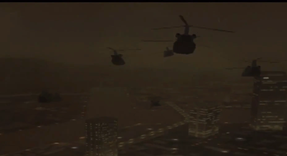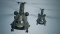 The aircraft was fielded in the Lighthouse War by both the Erusean and Osean forces. One CH-47 was used by Sea Goblin during a failed rescue of Former President Vincent Harling, who was trapped at the International Space Elevator.[2] During Operation Dragon Breath, Erusea deployed multiple CH-47s in an attempt to prevent Stonehenge from shooting down the Arsenal Bird Liberty.[3]
