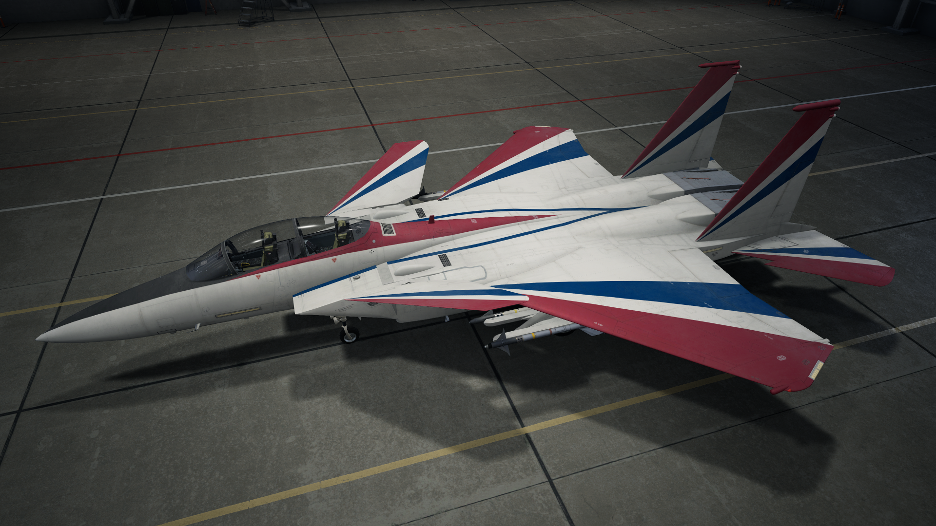 - Special: White body with red and blue stripes. Actual livery used by the F-15 ACTIVE during testing.