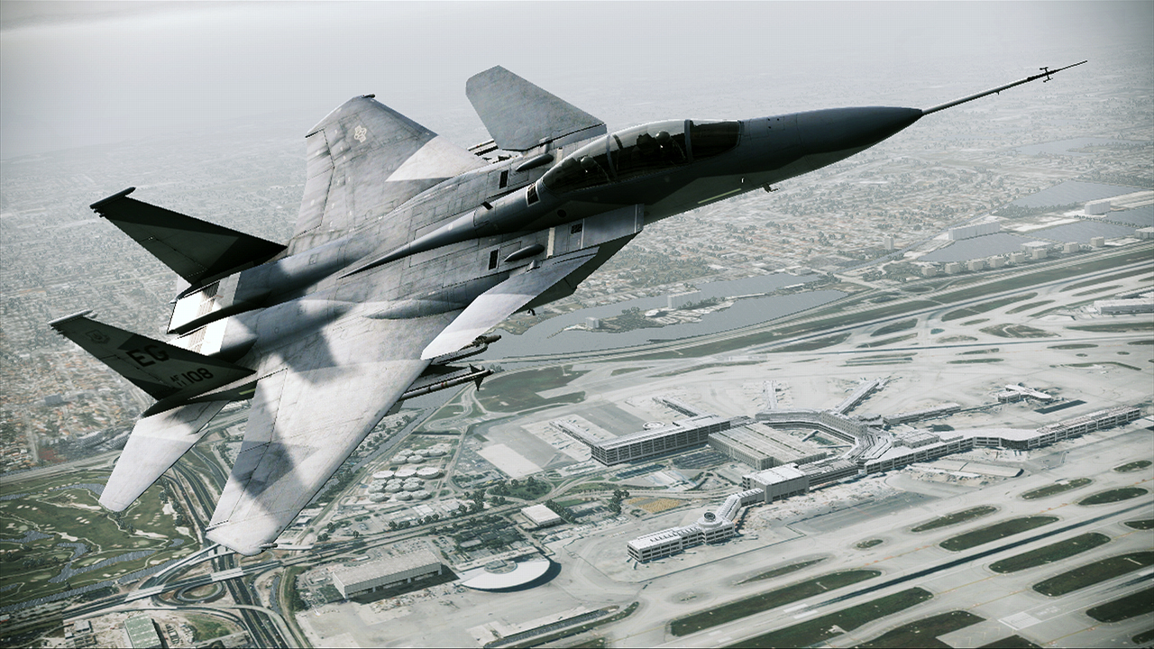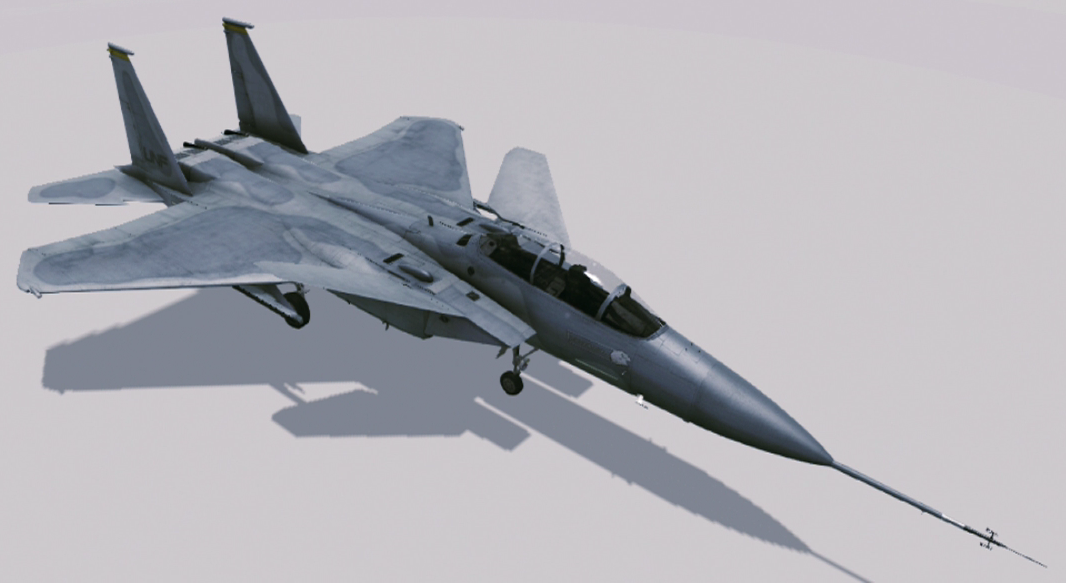 In Ace Combat 04: Shattered Skies, the aircraft was erroneously named the F-15 ACTIVE, a further modification to the S/MTD demonstrator[2] that has never featured in Ace Combat (though the ACTIVE nose boom[3] was oddly present on the S/MTD in Assault Horizon and Infinity). The Ace Combat 04 model did not feature any of the ACTIVE modifications or forward-swept wings as its hangar description claims; it did feature a single-seat cockpit, but this was also fictional as the S/MTD demonstrator always featured a two-seat cockpit.