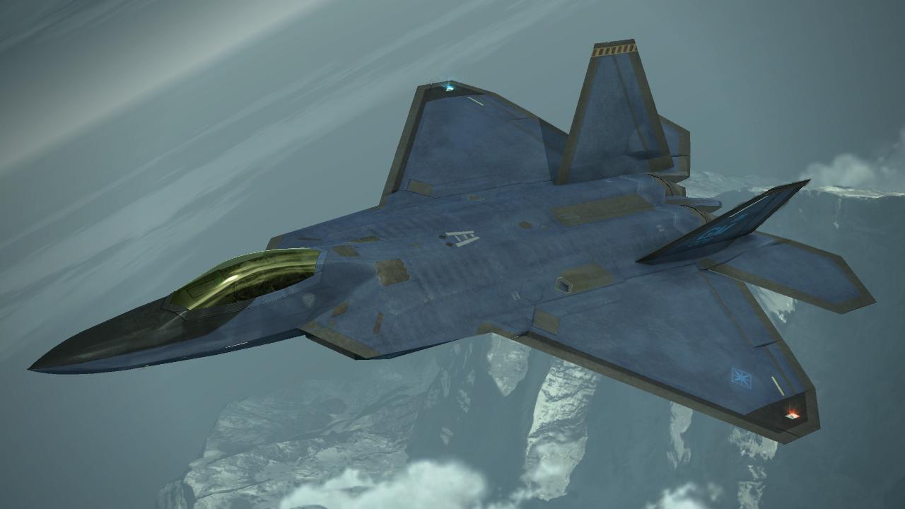 F-22A -INDIGO WING- is a skin for the F-22A Raptor available as DLC for Ace Combat 6: Fires of Liberation, as part of DLC Pack 06. It is also part of the Colored Wing Aircraft lineup of DLC for Ace Combat 6. It was released on March 26, 2008, and costs $2.49 (200 MSP, pre-MSP retirement) to download.