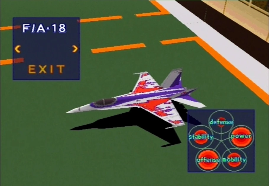 The F/A-18C Hornet (F/A-18 in Air Combat and F/A-18D in Ace Combat 2) is a multirole carrier-based aircraft.