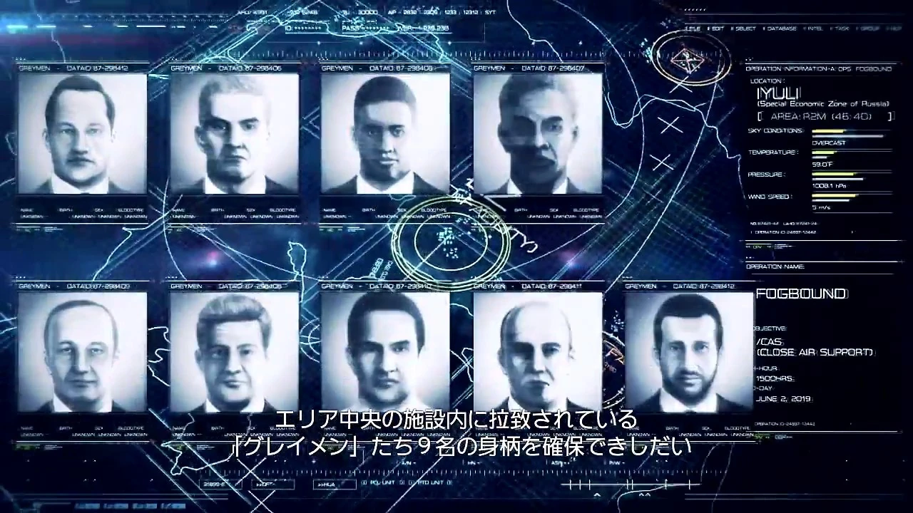 In May 2019, all nine Greymen were kidnapped by the Sons of Troia, a terrorist organization working in the Iyuli region. The United Nations Forces immediately began Operation Fogbound to rescue them, utilizing their Ridgeback Squadron and Marine commandos as well as, under contract, Bone Arrow Squadron. The UNF's intel led them to believe that the Greymen were being held in a facility in Iyuli. However, the commando teams discovered the Greymen were not inside. Shortly after, all forces were ambushed by Stonehenge Type-3 and forced to retreat.[2]