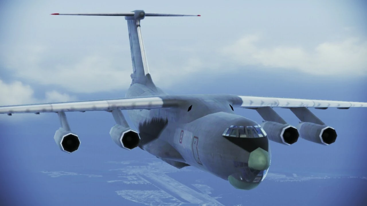 The Il-76 is a four-engine cargo aircraft. It debuted as part of the Russian Air Force in Ace Combat: Assault Horizon, and also appeared in Ace Combat Infinity and Ace Combat 7: Skies Unknown as an enemy aircraft.