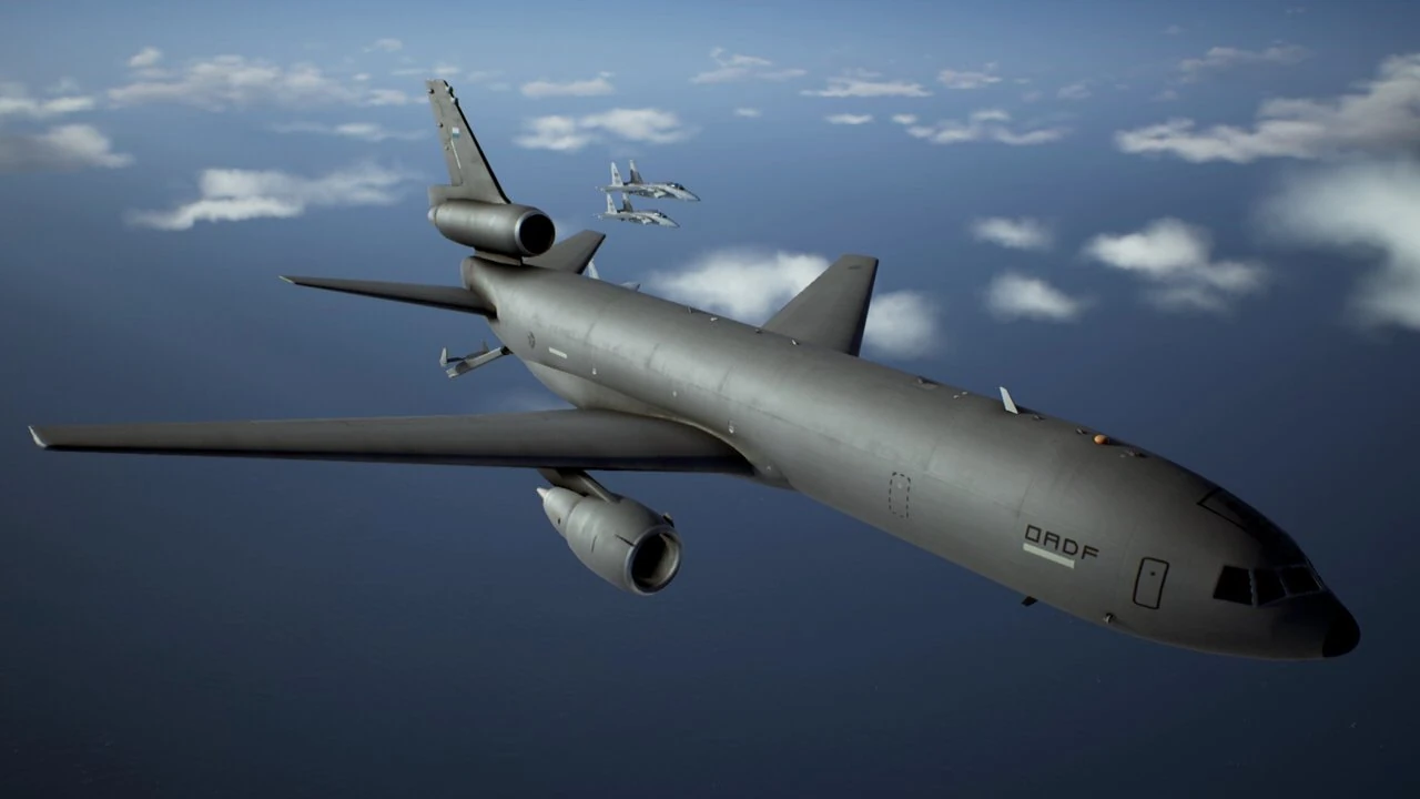 The KC-10 Extender is an air-to-air tanker aircraft. It has been featured in several Ace Combat games, typically appearing during refueling minigames.