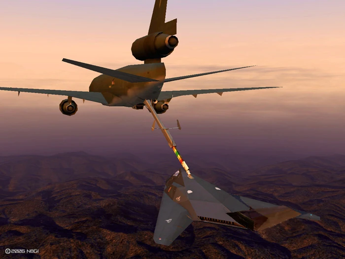 An Osean Air Defense Force KC-10 refuelling an F-104C Starfighter by hose and drogue