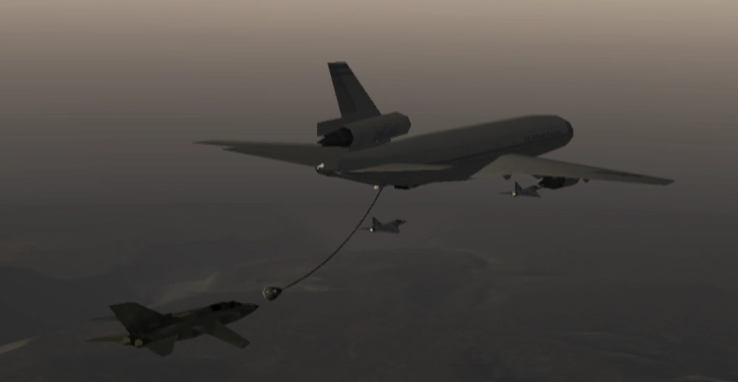 A KC-10 was used to refuel Antares One when Martinez Security were en route to Tokyo to respond to the Valahia's opening attack.[12] Later, the tanker was used to support Antares Squadron's operation throughout the Valahia Crisis.[13]