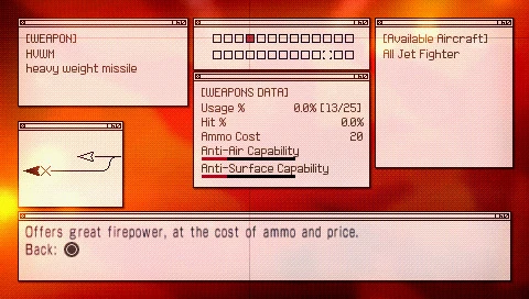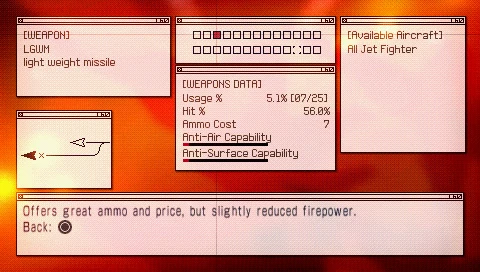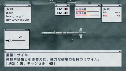 Ace Combat: Joint Assault introduced several new missile types alongside the normal, "vanilla" type. These new missiles often excel at certain fields, such as damage and speed, at the expense of drawbacks relative to their design.