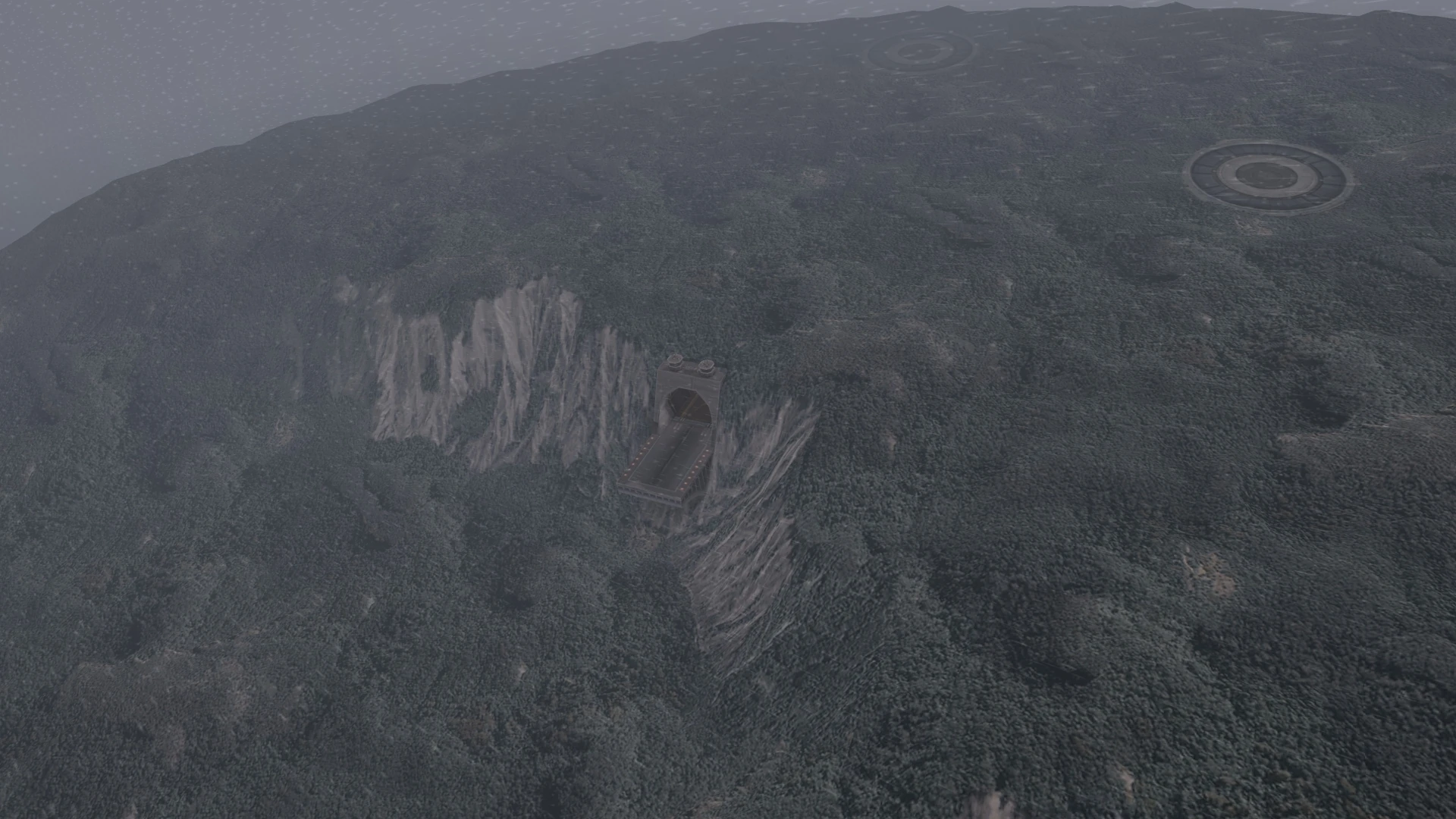 A missile silo facility in Romania; entrance tunnel in center, one silo at top-right