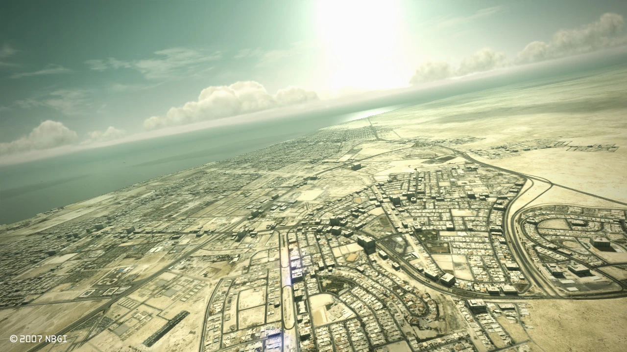 The city resembles a Middle-Eastern town with sand covering a majority of the landscape.