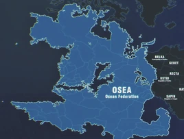 Osea, officially the Osean Federation,[a] is a massive Strangereal country and international superpower located on the Osean continent. Osea encompasses a majority of the continent's western landmass and shares land borders with Belka, Ustio, and Sapin to the east and Perbla to the south.[5] Its capital, Oured, is located on the tip of Osea's southeastern peninsula near Oured Bay.[6]