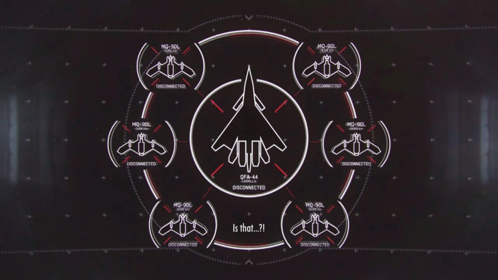 Three months later, a QFA-44 and a small formation of MQ-90Ls launched from an Aigaion-class heavy command cruiser over Tokyo and engaged Bone Arrow Squadron and Ridgeback Squadron, who were attempting to defend the city from the USEA Federation. During the ensuing dogfight, Ridgeback's leader, Slash, was killed by one of the MQ-90Ls. His murder enraged his wingman, Edge, to attempt to engage the QFA-44 solo. Bone Arrow Squadron came to her support and Reaper soon shot down the QFA-44.[2]