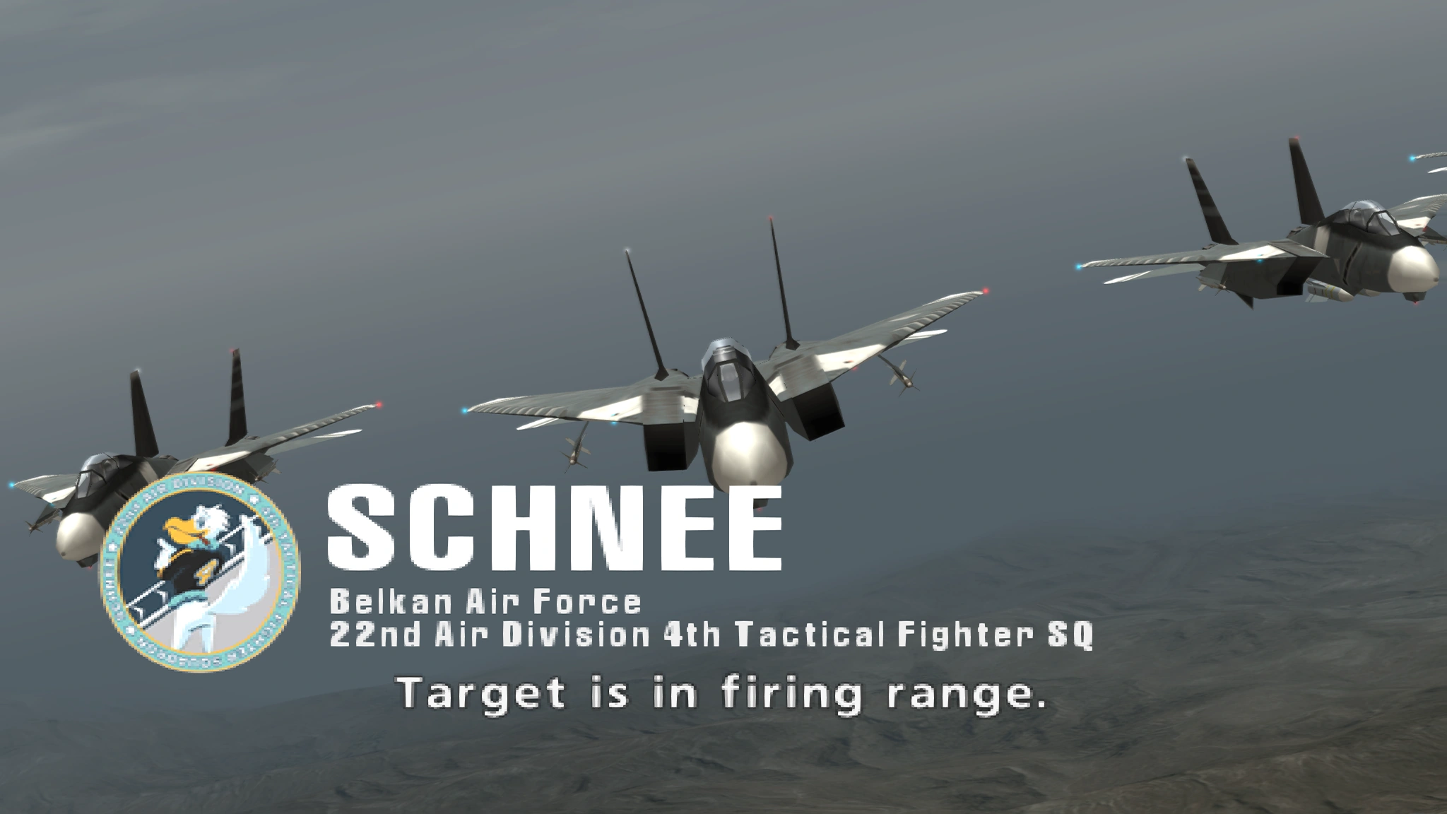 The 4th Tactical Fighter Squadron, also known as Schnee Team, was an elite Belkan Air Force squadron and operated four F-14D Super Tomcats and an EA-6B Prowler. The Schnee pilots used their aircraft to their best in battle. Their tactics rely on confusing and surrounding their enemies. Their F-14D Super Tomcats engage at both short and long distances, while the entire unit is supported by an EA-6B Prowler which jams enemy radar.