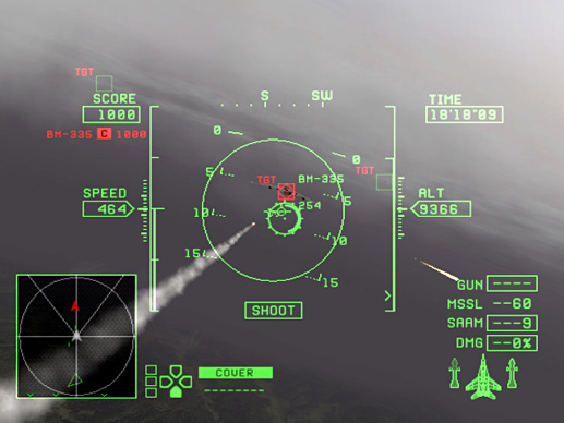 An SAAM launch in Ace Combat Zero: The Belkan War; note the large green circle (target reticle) in the center of the HUD