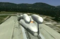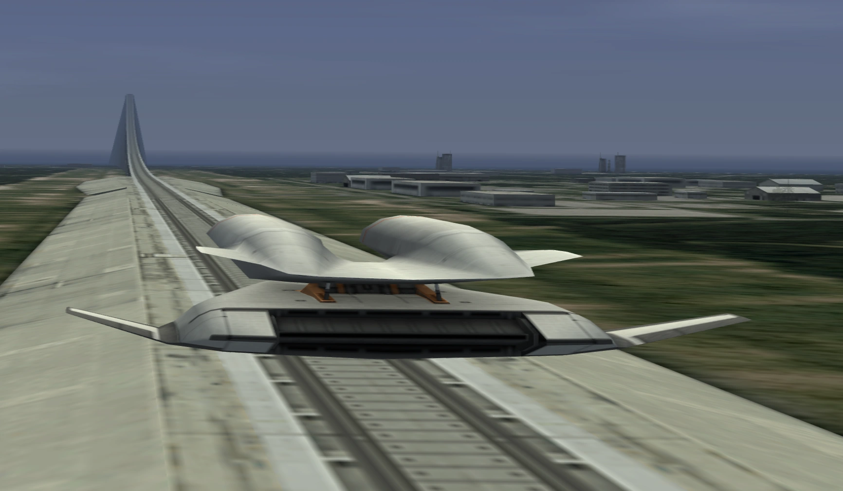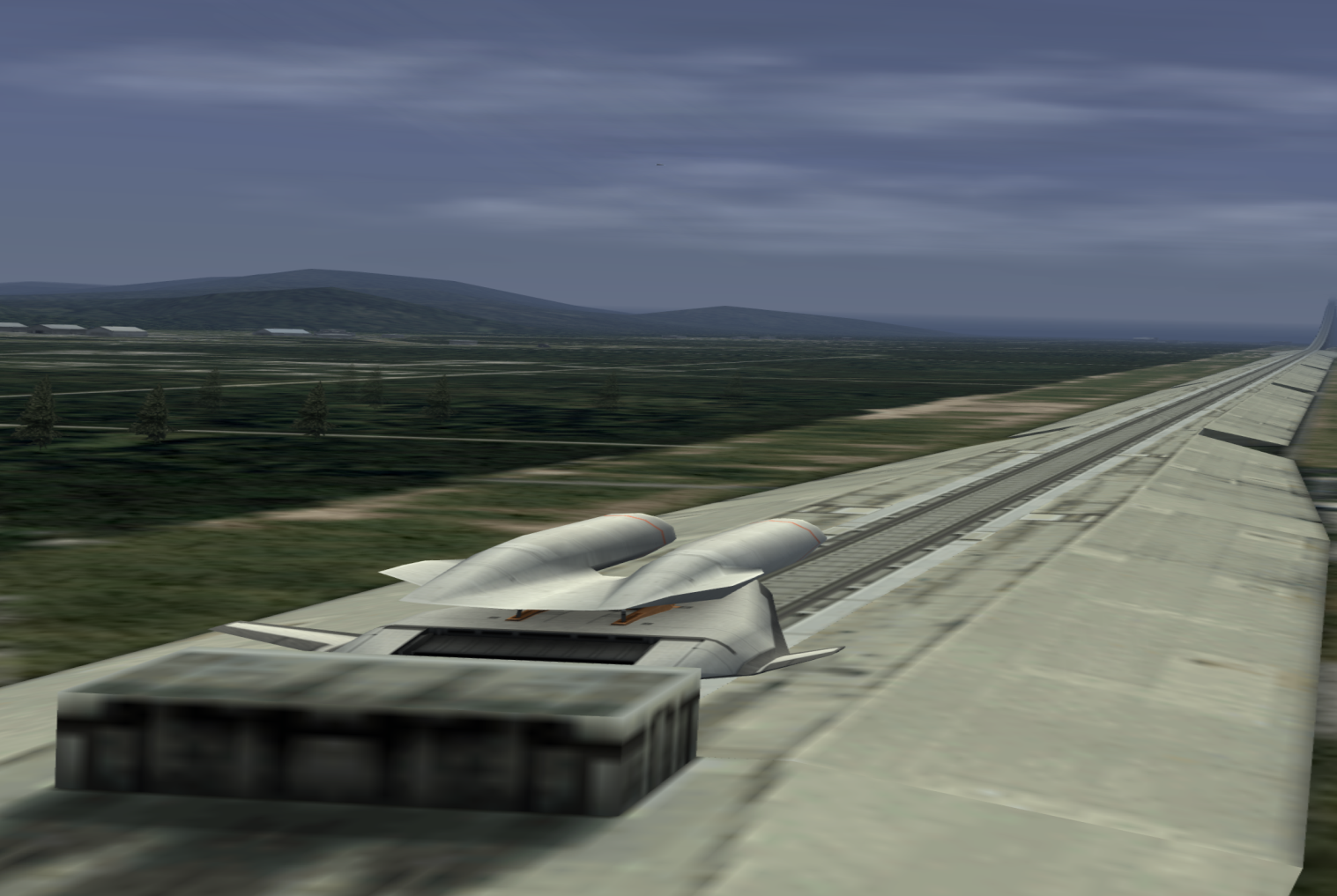 At least one SSTO shuttle is in use by the Osean Federation's space program. It can carry both a crew and a payload as far as low earth orbit and uses a mass driver to launch. In the midst of the Circum-Pacific War this vehicle ferried a laser weapon module to the Arkbird, nearly being destroyed during its launch from the Basset Space Center on October 3, 2010 by the Yuktobanian military. The efforts of the Osean Air Defense Force's Wardog Squadron allowed it to exit the atmosphere safely.[1]
