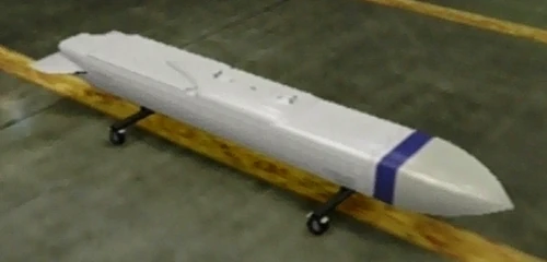 - "Numerous bomblets are dispersed from a guided dispenser that flies over a locked-on target. Effective against targets along a straight line."