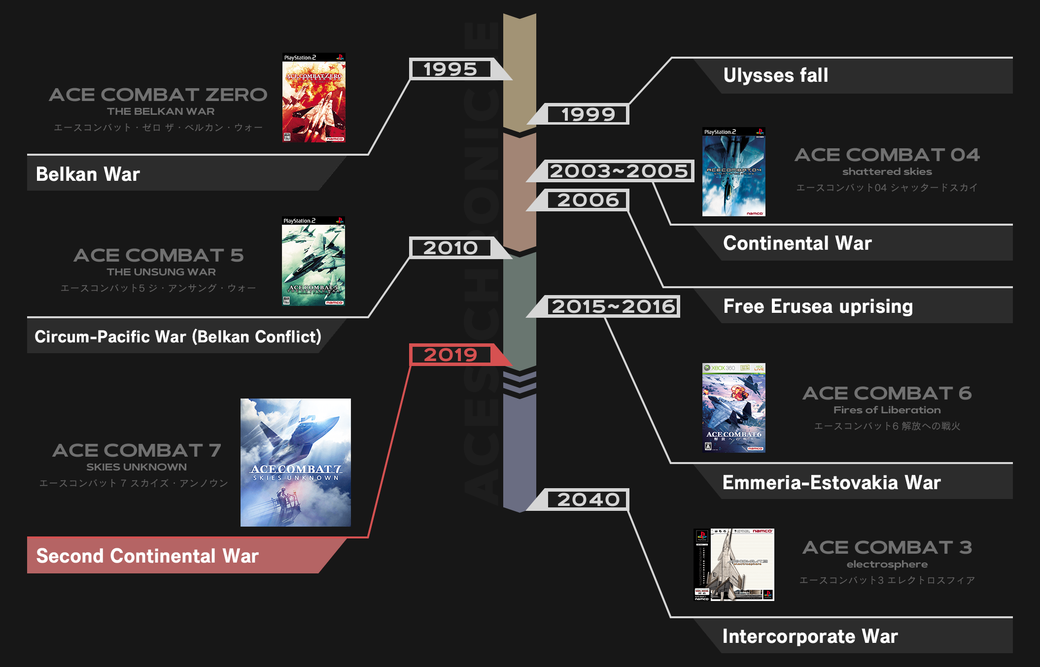 - 2020 Aurelian War (Ace Combat X: Skies of Deception and Ace Combat Xi: Skies of Incursion)