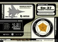 - "A single-seat twin-engine multi-role fighter. The Super Flanker's superagility [sic] is achieved through superior aerodynamic features and advanced turbofans with thrust-vectoring nozzles.... The Su-37 boasts the superior performance of all the planes in UPEO's arsenal; due to its large and spacious fuselage, the Su-37 can cope admirably with the whole spectrum of duties, from air dominance to ground attack. The UPEO has introduced numerous upgrades to ensure the fighter's viability: increased engine propulsion; new alloys and composites used to construct a stronger fuselage at a reduced weight; addition of an arrester hook for carrier landings; change of the in-flight refuelling [sic] system; differential canards. The avionics - in particular, the cockpit's coffin [sic] system - have been completely overhauled and replaced with newly-developed units. The result is a fighter with far superior performance over the original."