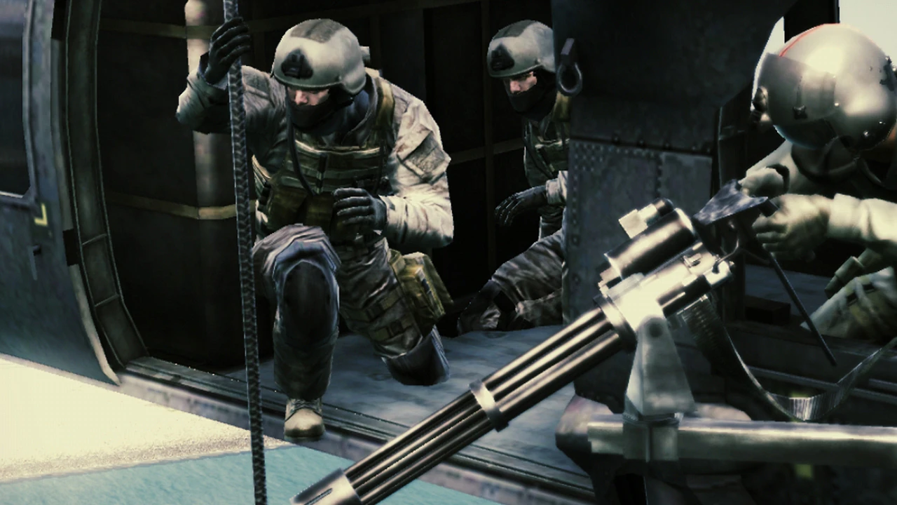 After the gunner killed all SRN soldiers, 61 descended into the bow and deployed its SEAL troopers on site, and broke off towards the starboard side to eliminate the rebels on the deck. Cooperating with Robinson, Nomad 61 killed many rebel soldiers located all over the deck area, causing extensive damage to the site's infrastructure as the helicopter went.