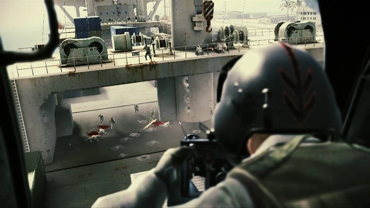 Nomad 61 flew past a docking port and arrived to their destination, the transport ship "Victoria Express". Upon their arrival to the fire zone, they were received with rocket launcher fire, prompting Nomad 61 to open fire and clear the bow area deck of hostiles.