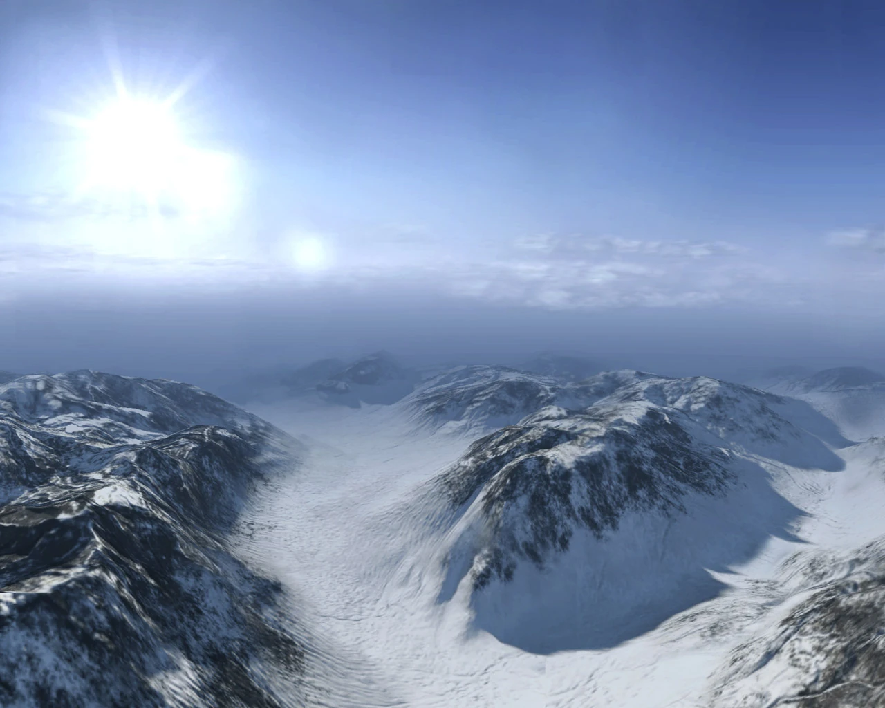 In terms of its height, the Tyrann Mountains are relatively short, with an average altitude of 3,000 meters (~9,800 feet) above sea level. The tallest peak, Monte Rosa, exceeds 4,000 meters (~13,000 feet). Snow cover is permanent due to the elevation, and the area is dotted with massive glaciers that have carved deep valleys between the peaks. In modern times, the mountains' valleys have become a popular vacation destination for year-round recreational skiing.[4]
