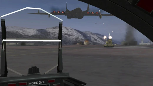 More than eight months later, on December 25, Valais Air Base was attacked by the XB-0 Hresvelgr gunship, which had been commandeered by A World With No Boundaries. Valais's anti-aircraft defenses proved no match for the XB-0's formidable size, and the base was heavily damaged. Despite this, Galm took off from the bombed-out runway and successfully shot down the XB-0 over the Waldreich Mountains.[6]