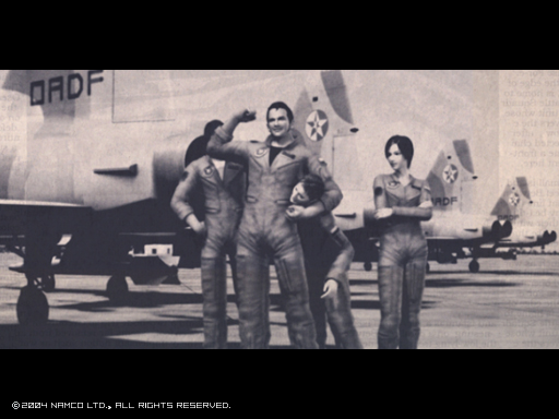 In the final VS Mode stage, both players are accompanied by wingmen that will engage the other player's squadron. One player is accompanied by Wardog Squadron, while the other is accompanied by pilots from Ace Combat 04: Shattered Skies.