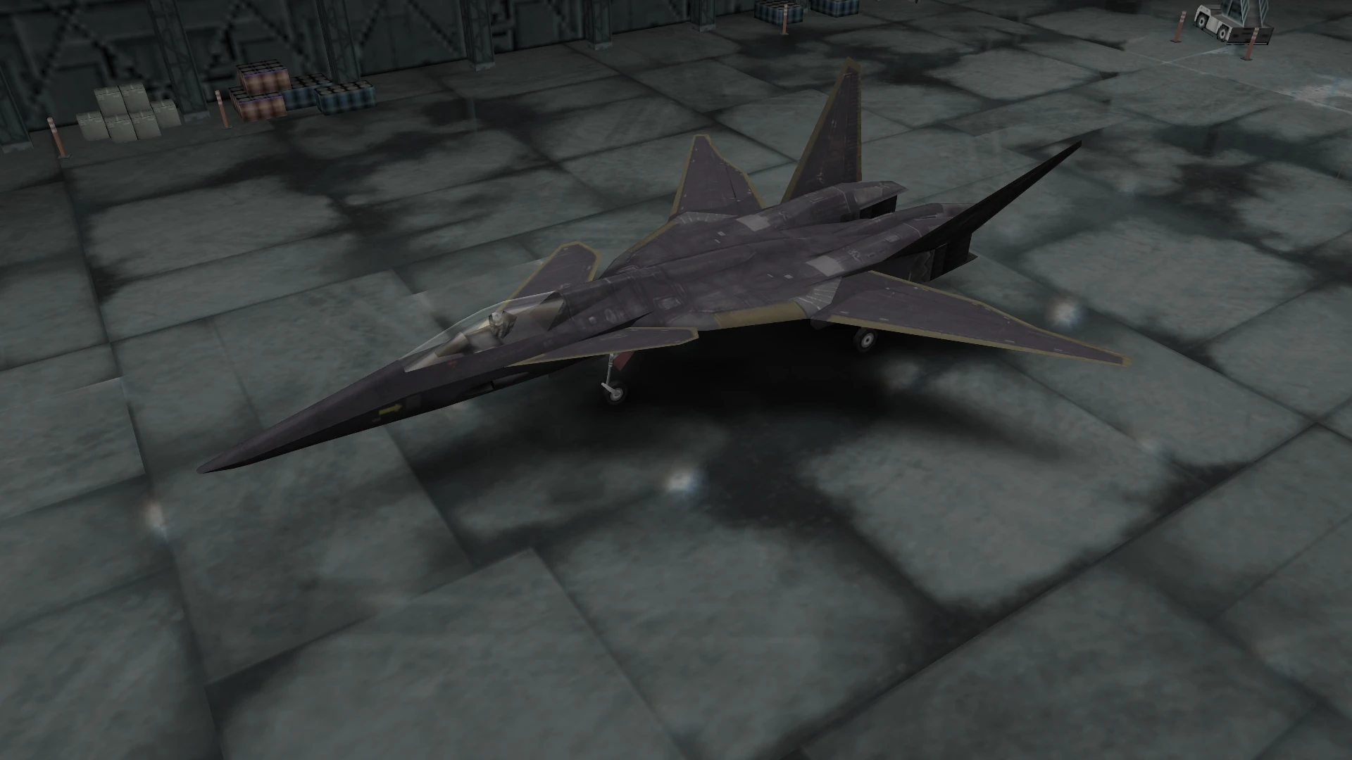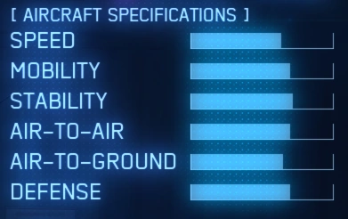 - "A carrier-based stealth fighter designed for ultimate performance. All information about its development, including its manufacturer and country of origin, is highly classified and has not been made public. The aircraft has a remarkably unique design for a stealth fighter. In the front, it sports all-moving canards, four tail wings (with two above and two below the engines), and variable sweptback wings that can adapt to a range of speeds. In the rear, horizontal paddle-type thrust vectoring nozzles are equipped on its twin-engine thrusters, giving it both mobility and stability. The aircraft also boasts unparalleled battle capabilities; multiple-launch Joint Strike Missiles can lock onto both air and ground targets, allowing a concentrated attack on a single target or a dispersed attack against multiple targets. Its sophisticated electronic warfare system offers both support and interference that give the upper hand in all kinds of combat situations, even solo raids. Equipped with a full spread of cutting-edge technology, this aircraft demands an equally exemplary pilot who can bring out its full potential."